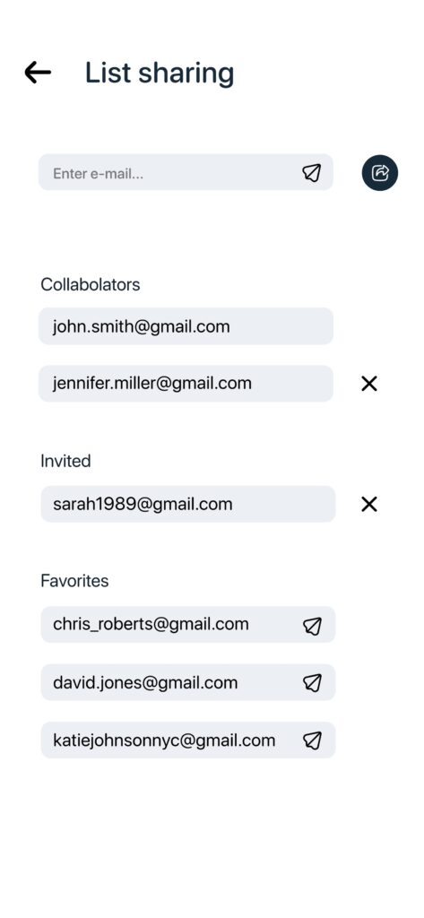 Real-Time Collaboration. Share your list with one or more people and keep everything synced. Whether you’re splitting errands or planning together, everyone sees updates live — and can edit simultaneously.
